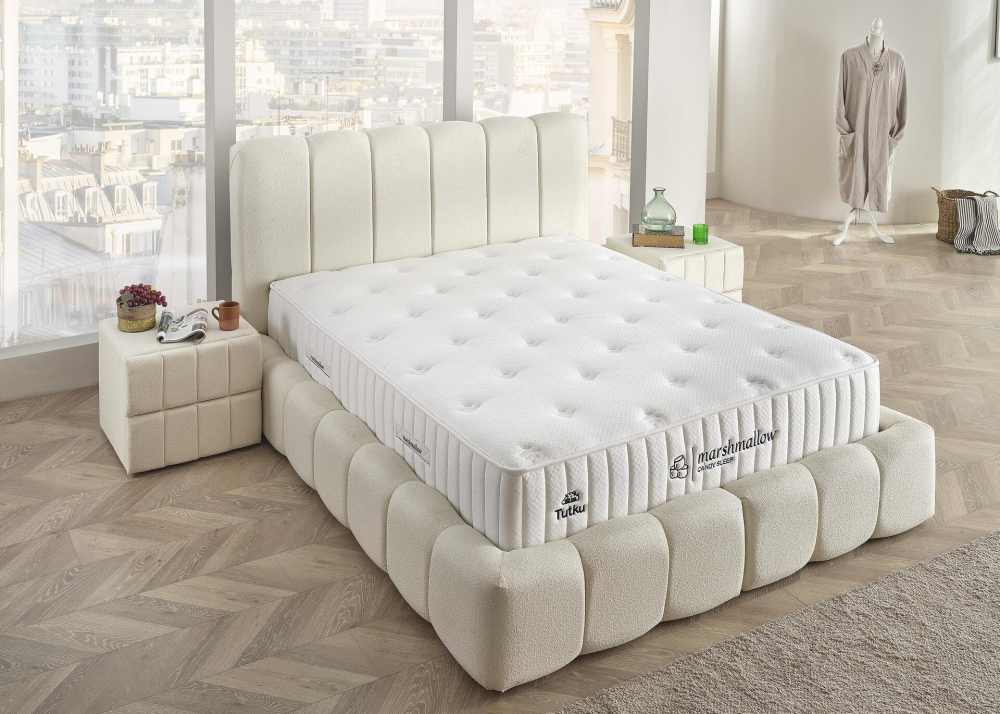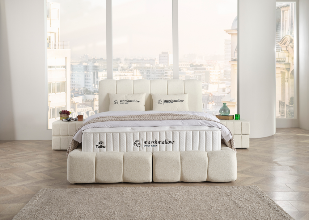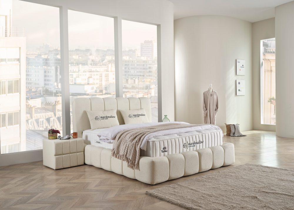 Тапицирано спално легло Marshmallow е част от модерната колекция на мебели Tutku Yatak – съчетание от модерен дизайн, качество и функционалност.