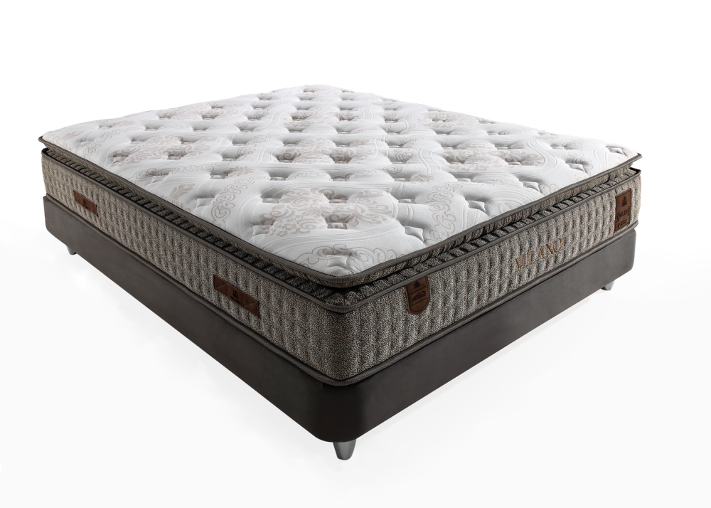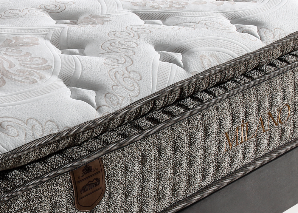 • Матрак Milano е снабден комфортен прошит топ матрак и дишаща дизайнерска дамаска Knitted Fabrik.