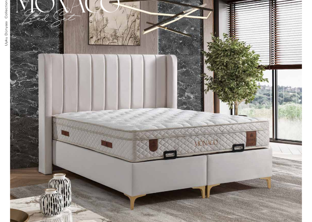 Тапицираното легло Monaco е от стилната колекция на Uyku Dünyasi впечатлява с модерен дизайн, висококачествена изработка и функционални предимства, превръщайки го в перфектния избор за едно елегантно и уютно спално обзавеждане.