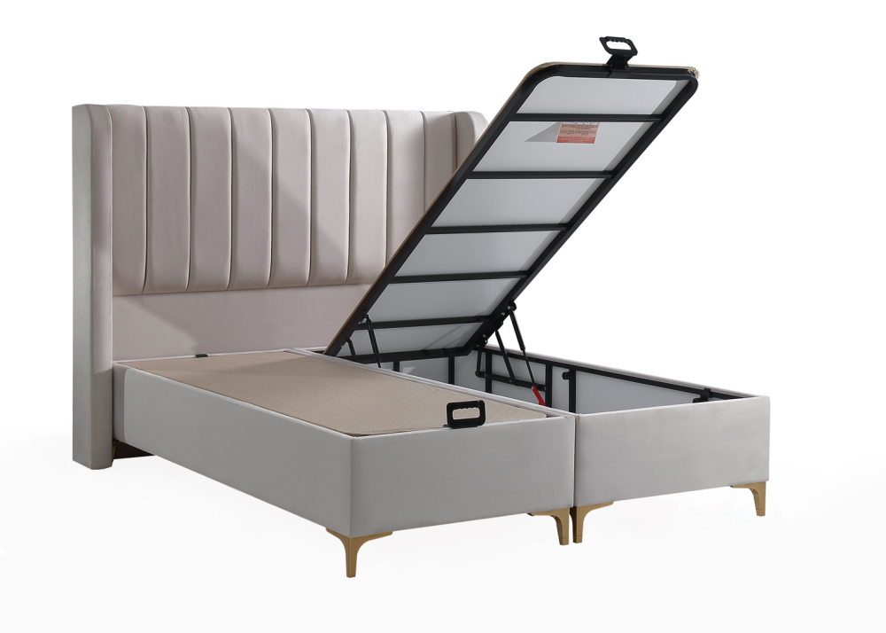 Тапицирано легло Monaco крем с повдигащ механизъм и просторно подматрачно отделение за съхранение