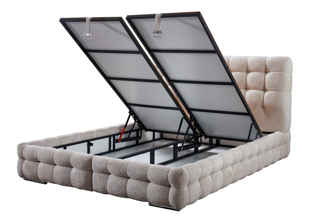 - Базата е снабдена с дъно и нов модел повдигаща система от 1бр (за единичните размери) / 2бр метална подматрачна рамка с цял ламиниран ПДЧ панел. Рамката е оборудвана с 2бр / 4бр газови амортисьори /2х2/ по 750N, може да се повдига всяка основа по отделно или заедно, има спирачка на механизма, която може да се ползва когато механизма е отворен. На дъното и рамката са монтирани вентилационни капачки. Основата предоставя голямо празно подматрачно пространство, подходящо за съхранение на спални завивки и други вещи.