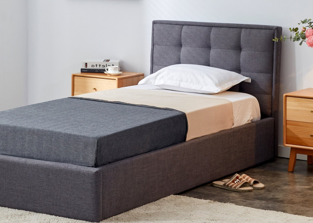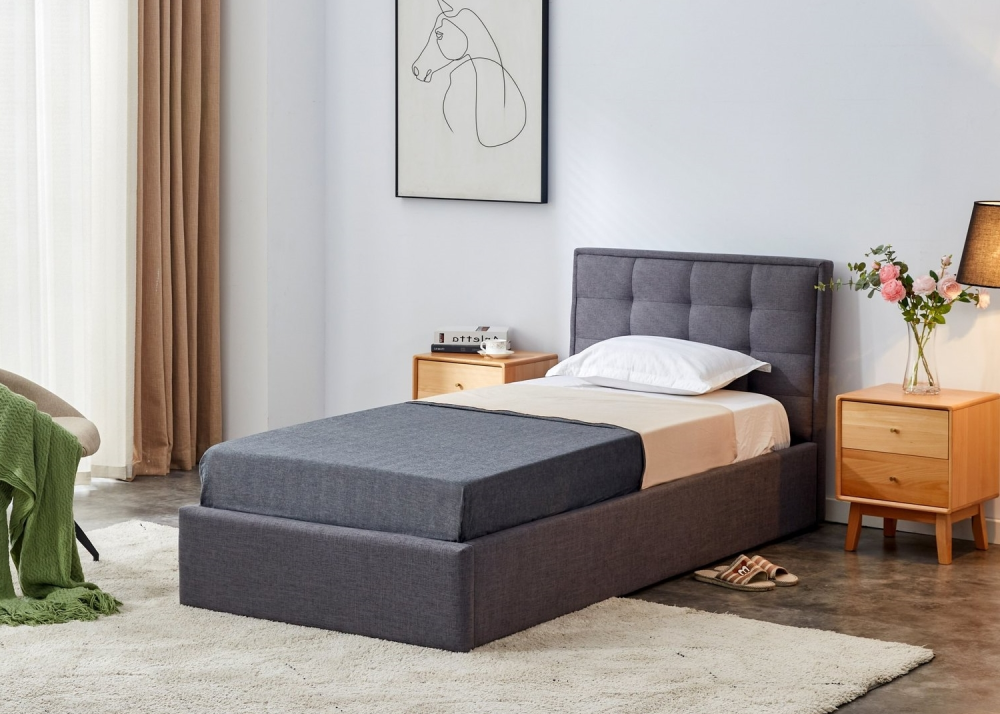 - Тапицирано легло Padva 90 в Сив цвят, единично легло за матрак 90/200см.