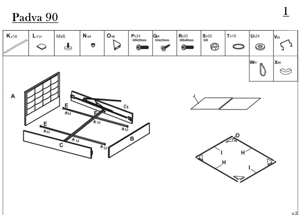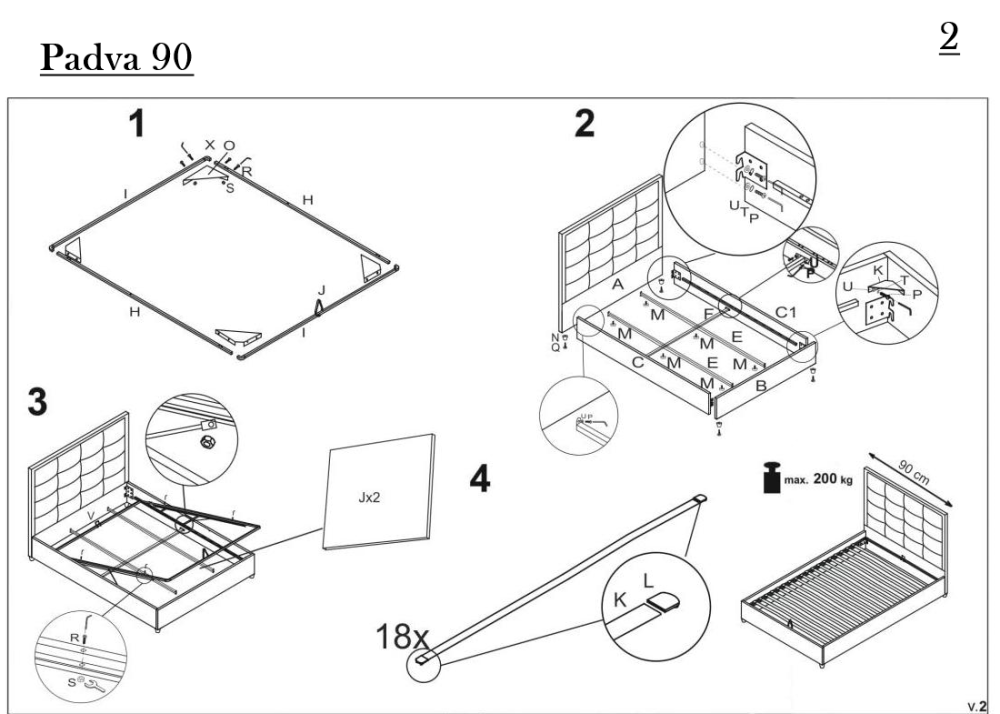 Тапицирано единично легло Padva 90 е с модерна капитонирана табла и основа, снабдено е с повдигаща подматрачна система. Притежава голямо поднатрачно пространство, подходящо за съхранение на спални завивки и други вещи. Легло Padva е капитонирано с качествена дамаска в стилен дизайн. Легло Padva 90 се предлага в комплект с метална повдигаща се подматрачна рамка с дървени ламели, за матрак с размер 90/200см.