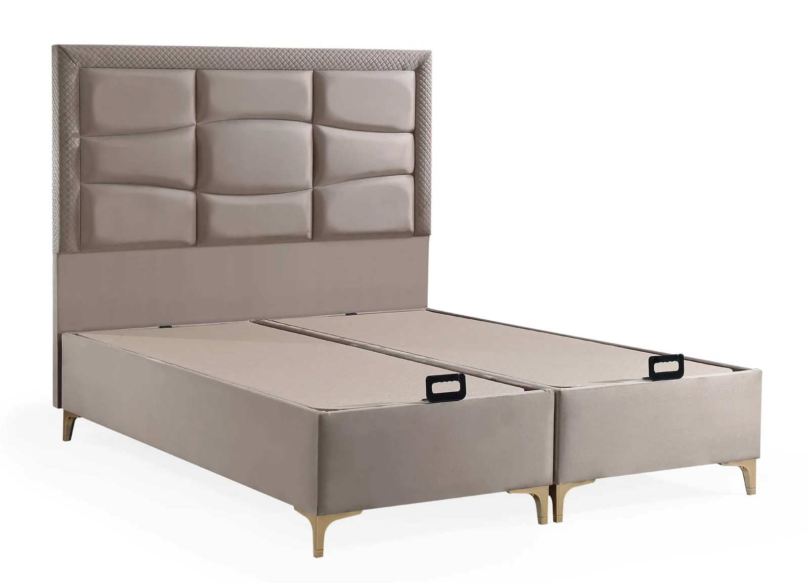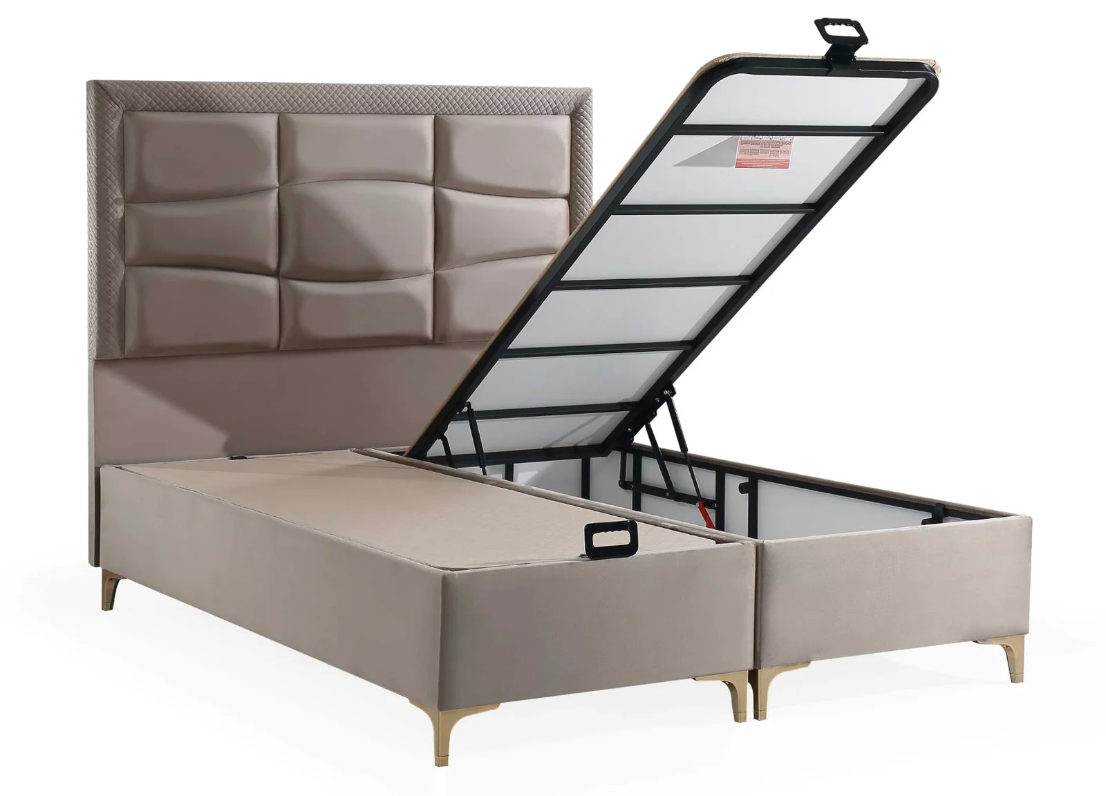 Тапицирано легло Roma Uyku Dunyasi Светлобежово – модерен дизайнерски модел с капитонирана табла, повдигащ механизъм и място за съхранение