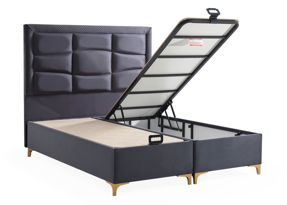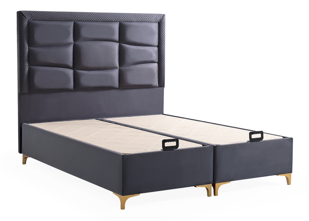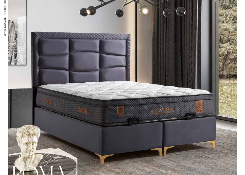 Тапицирано легло Roma Uyku Dunyasi в цвят Сив Диамант, притежава модерна капитонирана табла и основа с вградена повдигащ се подматрачна място рамка. Предлага се в 10 размера с опция за покупка без матрак или в комплект с матрак Roma.