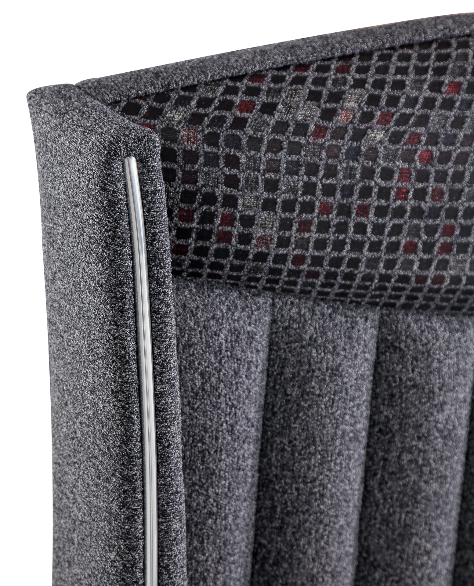 Тапицираното легло Romeo е дизайнерски модел, съчетаващ функционалност и съвременна модерна визия, проектиран с внимание към всеки детайл. Капитонираната табла е декорирана с алуминиеви лайсни, които придават допълнителен комфорт и естетика, превръщайки леглото в акцент с изтънчен характер за всяка елегантна и модерна спалня. Таблата и основата са тапицирани с висококачествена и устойчива мека дамаска PERU 520 GREY в тъмносив цвят, който носи усещане за уют, комфорт и стил. Тапицираната основа е снабдена с вградена подматрачна система, оборудвана с повдигащ механизъм и газови амортисьори, осигуряващи лесен достъп до просторно вътрешно пространство за съхранение – идеално за завивки, възглавници, спално бельо и други вещи, които трябва да бъдат подредени практично и дискретно. Конструкцията на леглото гарантира здравина, удобство и дълготрайна експлоатация, съчетавайки функционалност, стил и надеждност в един завършен продукт, който се вписва идеално във всяко съвременно интериорно пространство.