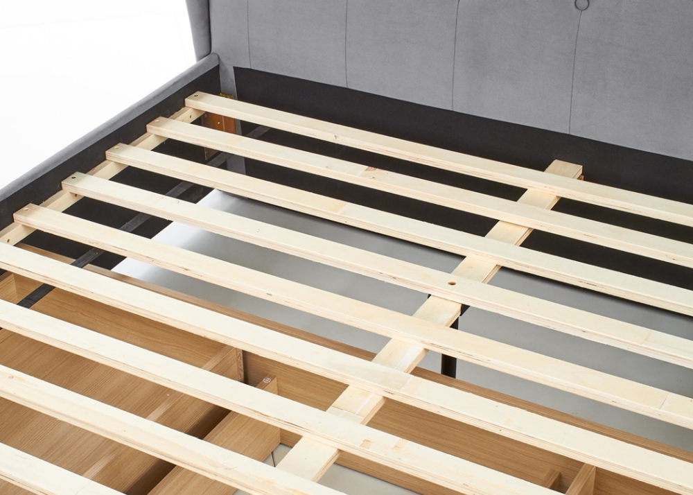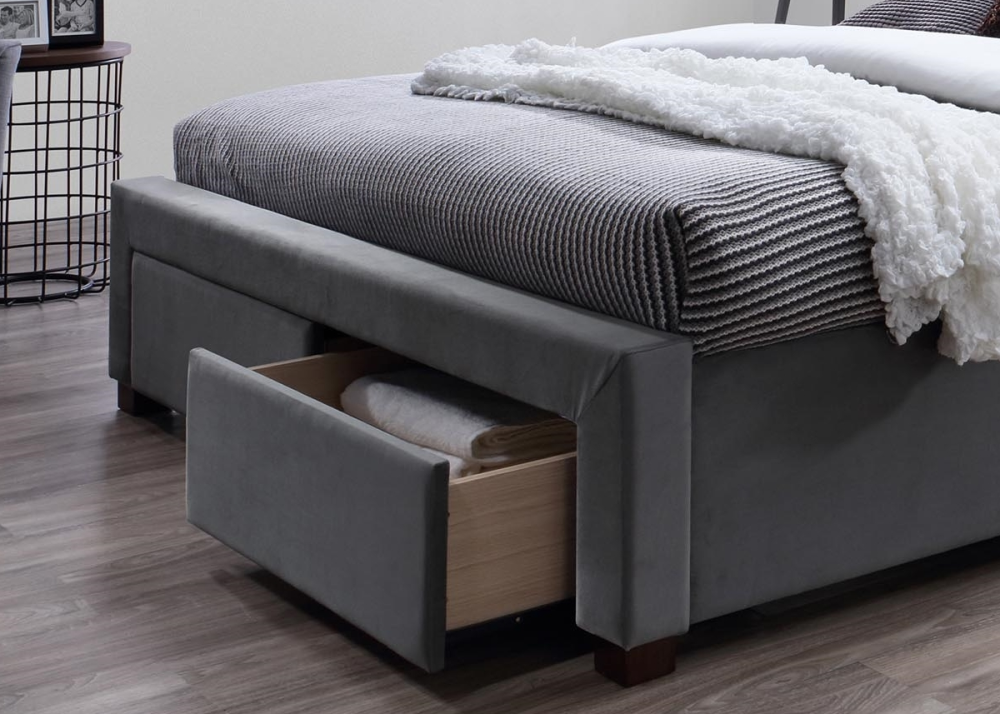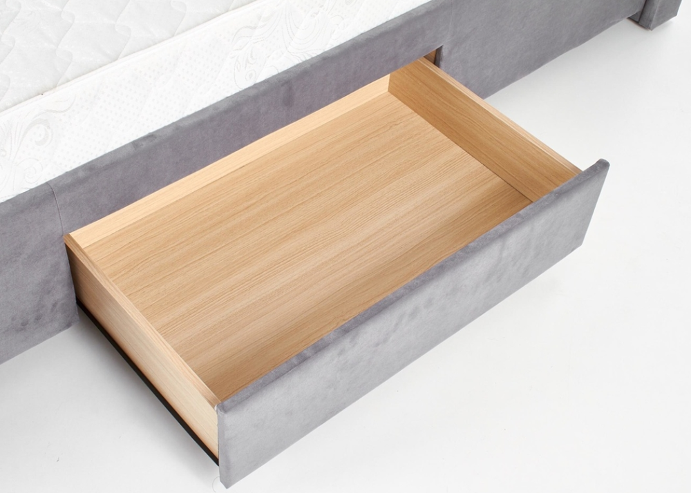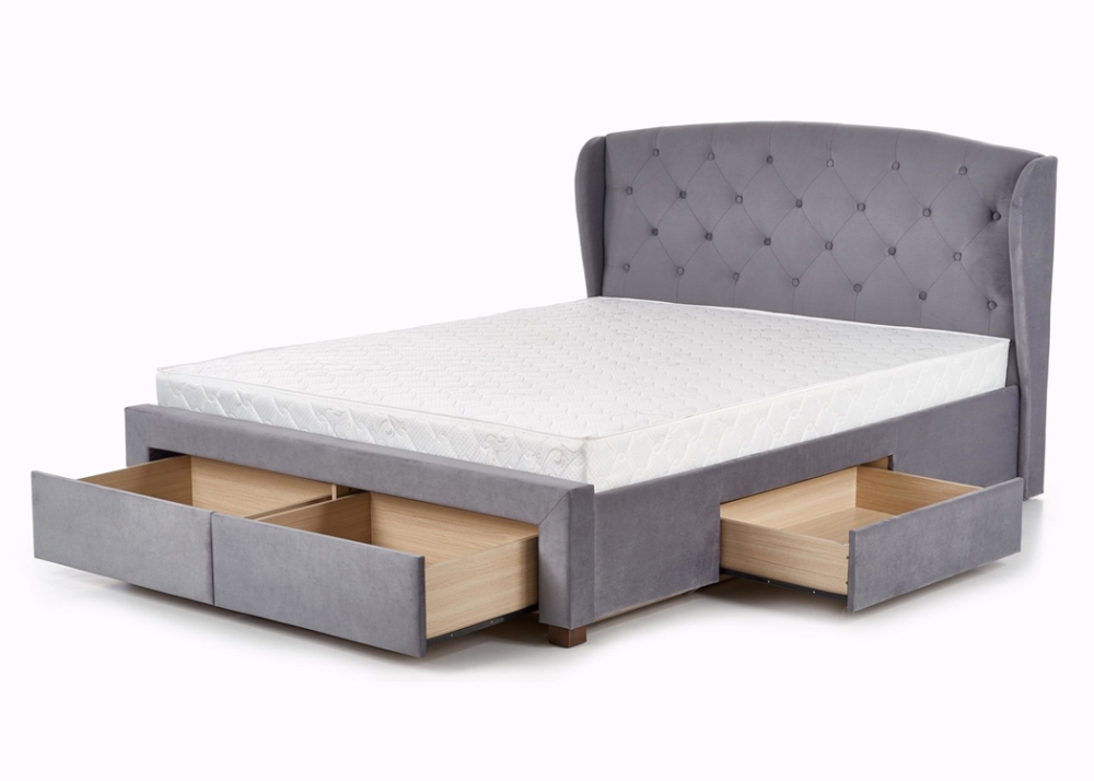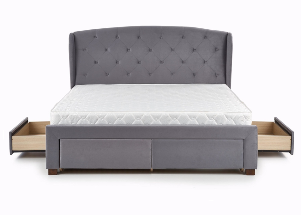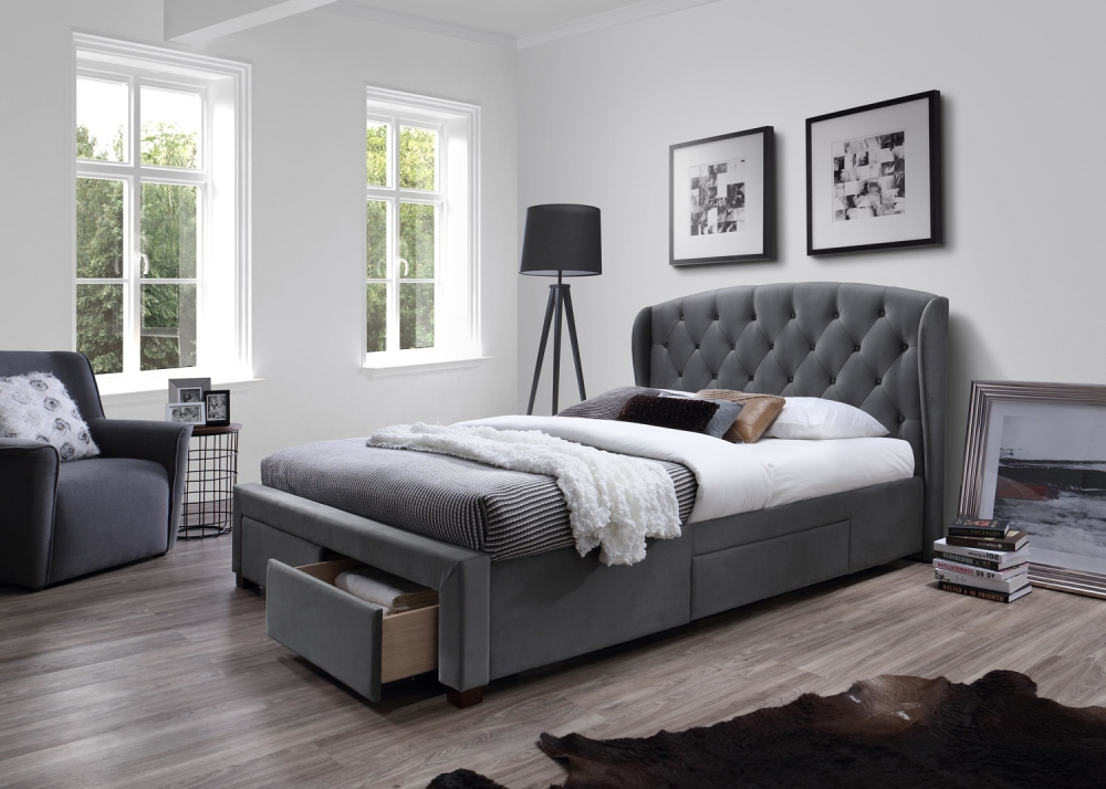 Тапицирано легло Sabrina Сиво е функционално спално легло с 4-четири чекмеджета. Конструкцията е здрава и устойчива, изработва се от масивно дърво. Състои се от стабилна основа, голяма табла и четири чекмеджета. Тапицирано легло Sabrina е снабдено с плъзгащи механизми на чекмеджетата и дървена подматрачна рамка.
