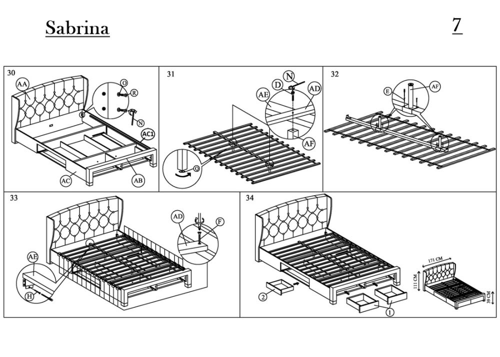 Тапицирано легло Sabrina е функционална тапицирана спалня, с голяма табла и 4-четири плъзгащи чекмеджета, капитонирано с кадифена дамаска в модерен дизайн. Тапицирано легло Sabrina е в комплект с подматрачна рамка, за матрак 160/200см. Чекмеджетата на легло Sabrina са снабдени с плъзгащи механизми, за лесно и плавно отваряне / затваряне.