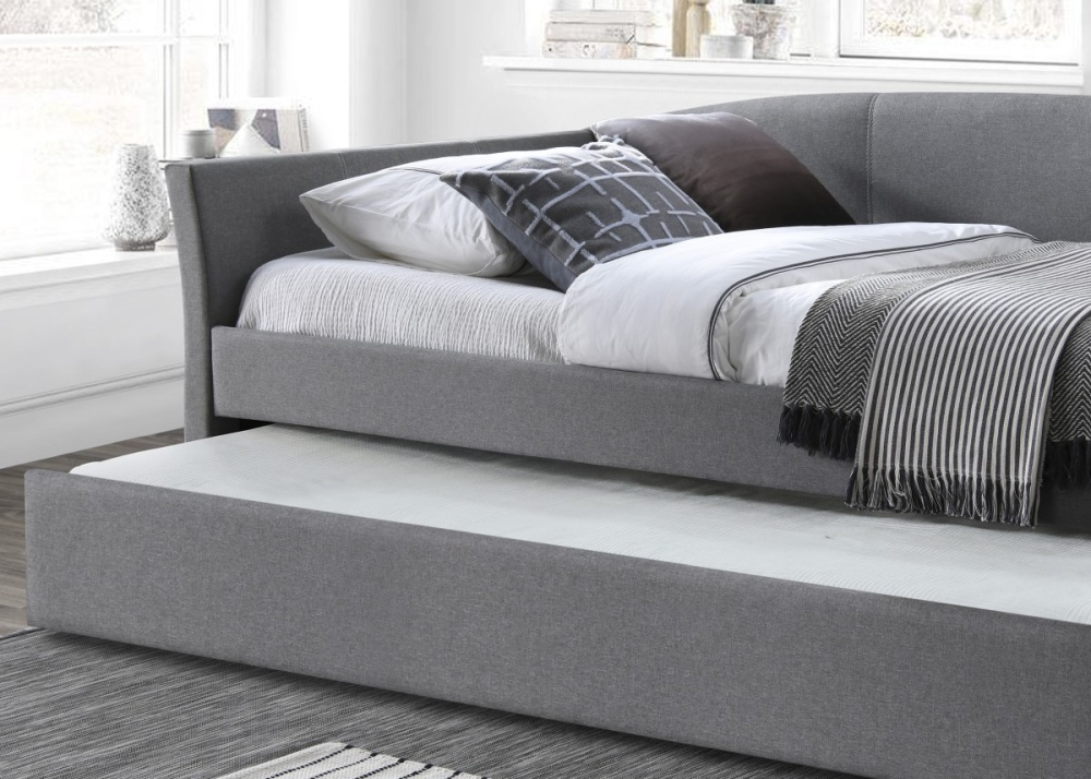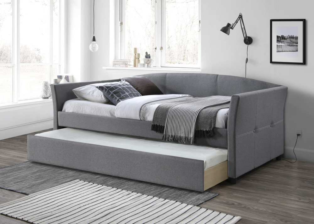 Тапицирано легло Sanna е иновативно и функционално единично тапицирано легло тип сандвич, с разтегателен механизъм, капитонирано е с мека дамаска в модерен дизайн. Тапицирано легло Sanna се предлага в комплект с 2-две подматрачни скари / рамки, с възможност за добавяне на два единични матрака с размери 90/200см.