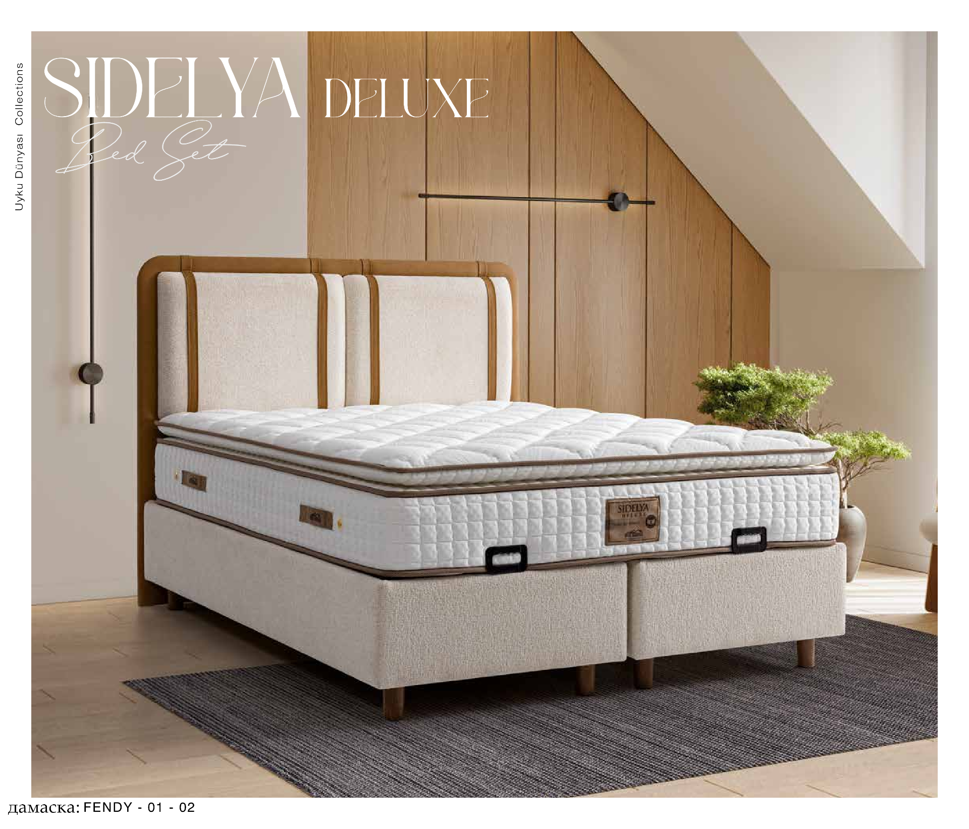 Тапицираното легло Sidelya Deluxe е част от колекцията на мебели Uyku Dünyasi впечатлява с модерен дизайн, висококачествена изработка и функционални предимства.