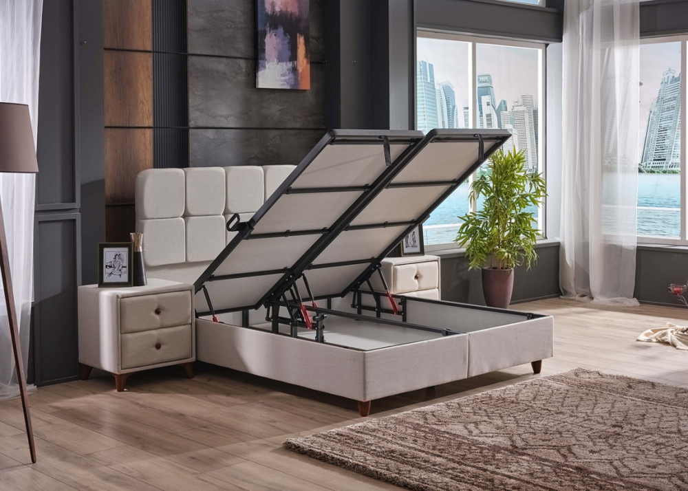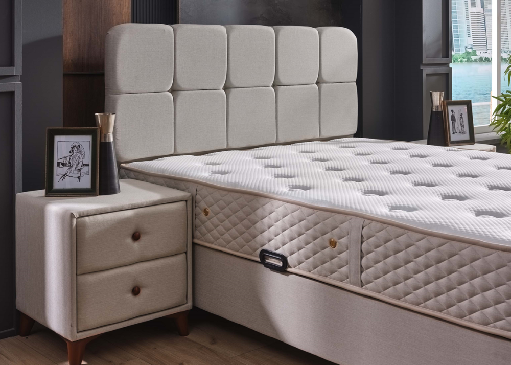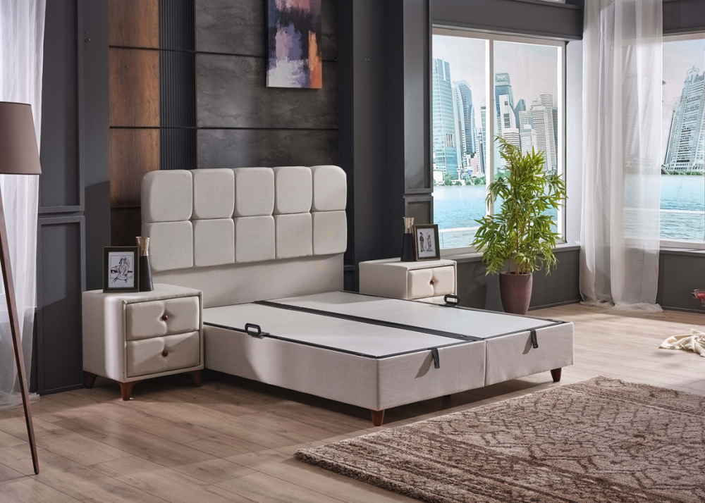 • Тапицирана спалня Silver Сив Крем с матрак Silver Ergonomik.