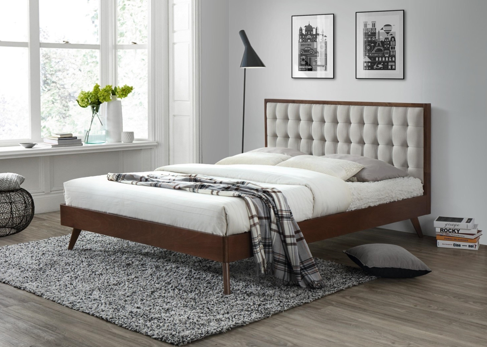 Спално легло Solomo представлява устойчива основа, крачета и табла, които се изработват от MDF + естествен фурнир / масивно каучуково дърво, в цвят орех. Таблата, основата и крачетата, са в елегантен дървесен декор цвят орех. Таблата допълнително е капитонирана с висококачествена мека дамаска в бежов цвят. Спално легло Solomo е снабдено с устойчива ламелна дървена подматрачна рамка и елегантни крачета. Не притежава повдигаща подматрачна рамка.