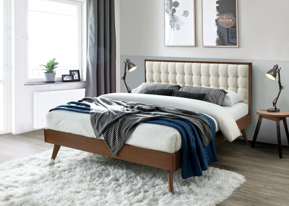 Тапицирано легло Solomo е с модерна капитонирана табла в бежово и основа с крачета в елегантен дървесен декор.Тапицирана спалня Solomo се предлага в комплект с подматрачна рамка, за матрак 160/200см.
