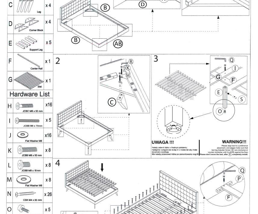 - Габаритни размери на леглото Ш/Д/В: 166/209/106см.