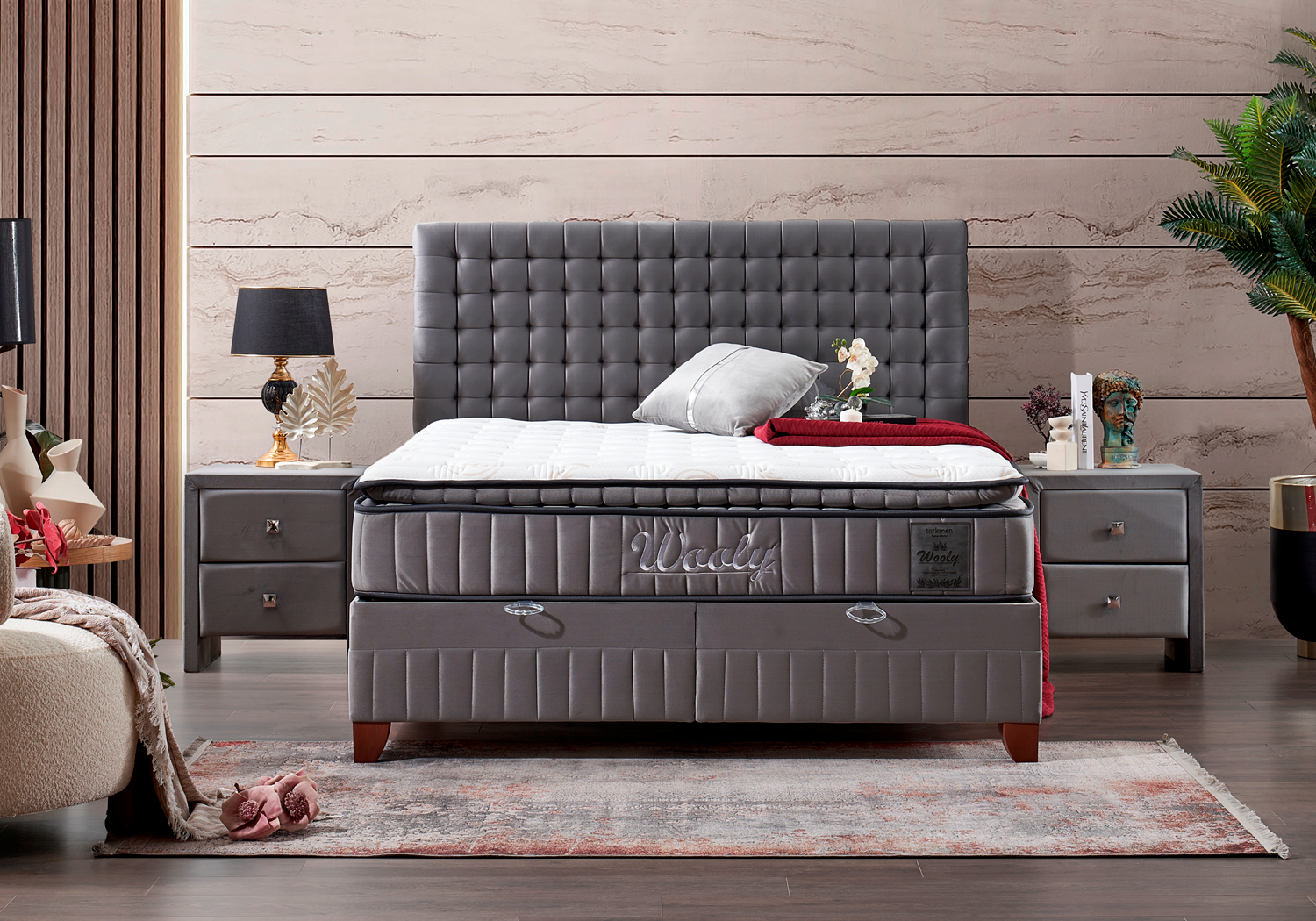 Тапицирано легло Wooly е част от колекцията на доказалия се Турски производител на мебели и матраци Türkmen mobilya.